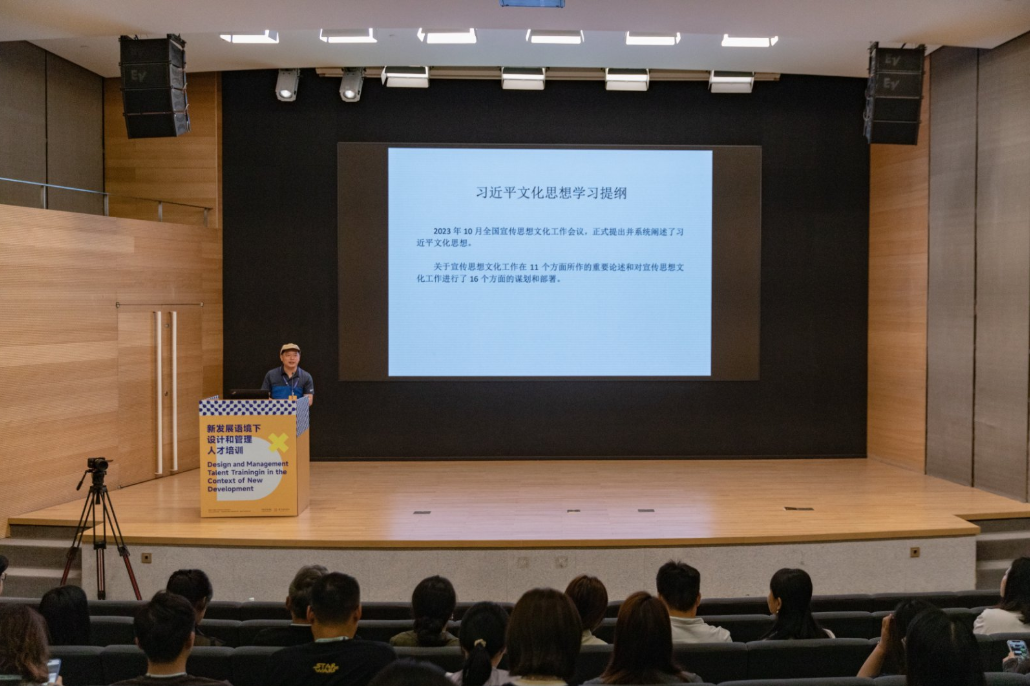 开班仪式结束后,中央美术学院设计学院党委副书记计华老师以“习近平文化思想”为题为全体学员进行开班思政第一课授课。