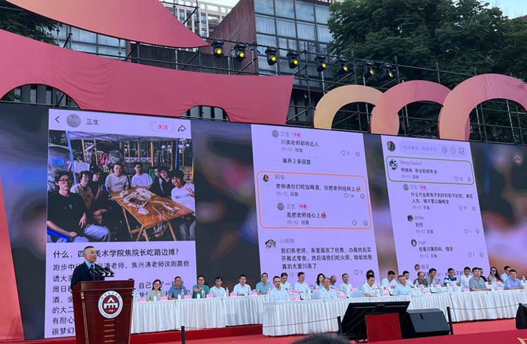 艺术之用更在广阔天地间绽放:校友郑如晶将川美人的创造力融入商业,打造年销售额超20亿的企业,她将菜市场速写中“尽精微,致广大”的观察力转化为商业智慧;章昊旻扎根新疆基层,成为服务西部的人民设计师;胡楚靓在校创业,去年公司销售额突破2.5亿——艺术赋能他们从真实生活出发,在社区烟火中创新立业。