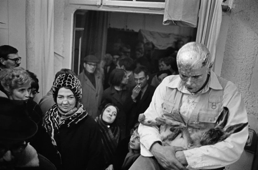 约瑟夫·博伊斯《如何向死兔子解释绘画》1965年 视频胶片扫描