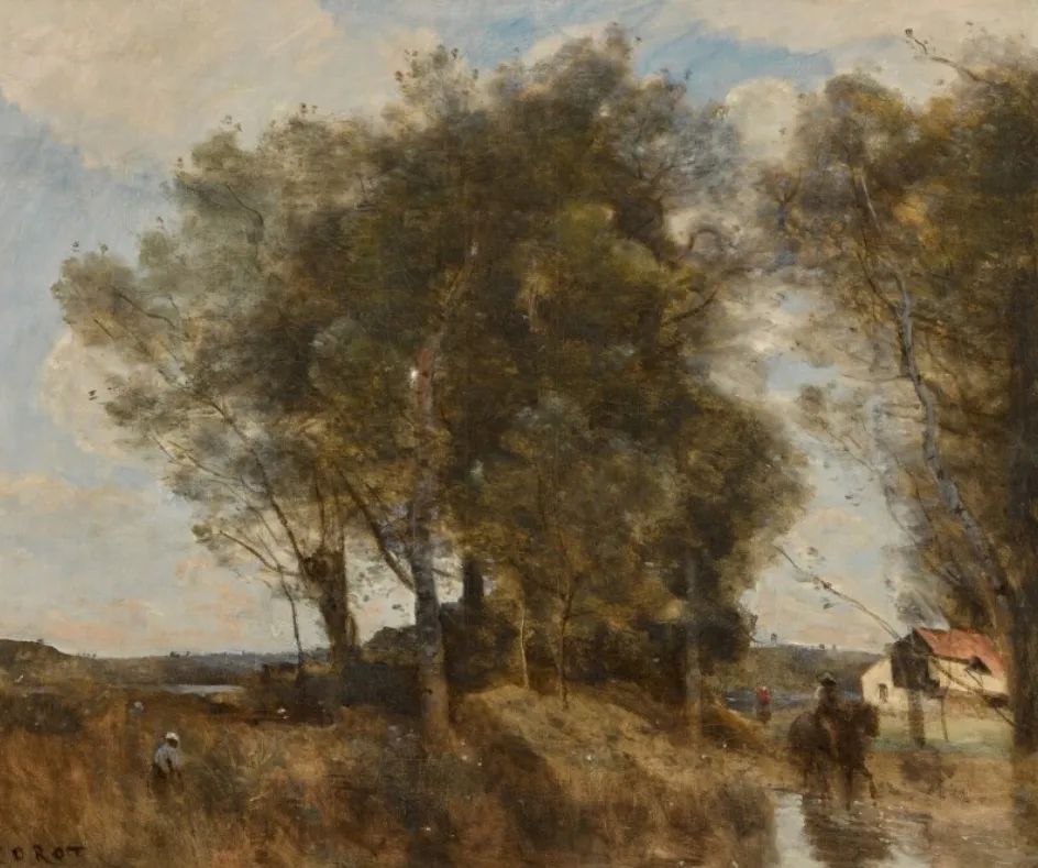 柯罗的画作以创新风格及自由笔法而闻名,而他在自然环境创作的油彩速写和素描不计其数,大多作于他情有独钟的枫丹白露森林,借着写生捕捉光影的瞬间变化。这幅近乎抽象的速写展现出柯罗的独特巧思。