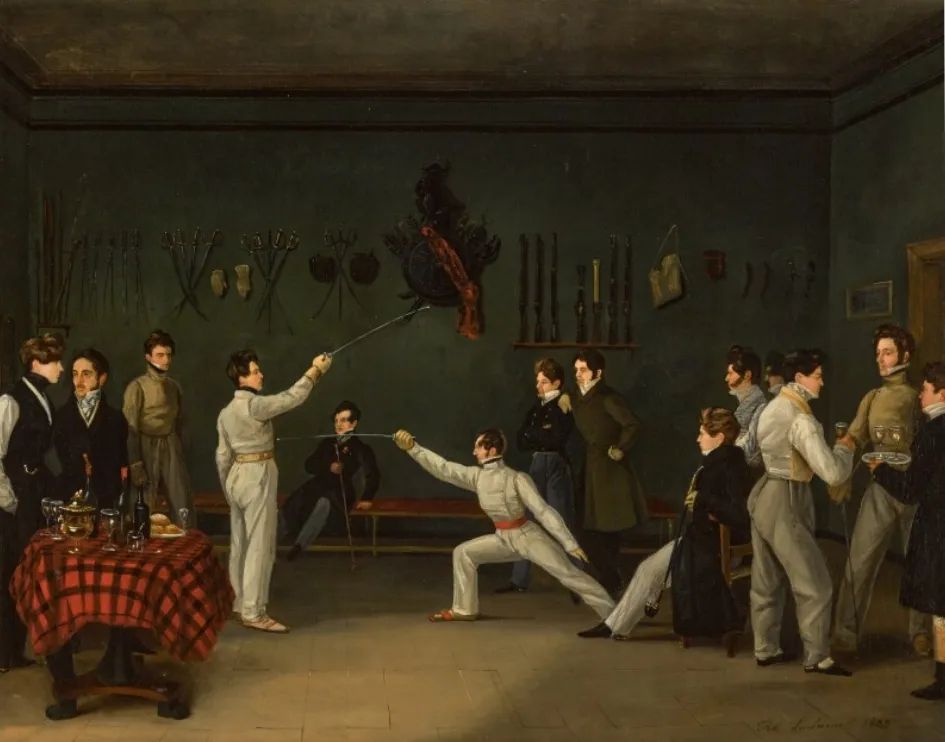 运动艺术中,击剑与赛马、狩猎一起,一直是欧美庄园墙上挂画的重要元素。在工业时代,旧世界传统与价值观逐渐消失,众多画家视运动艺术为保存传统文化的方式。