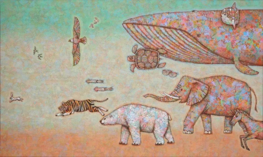 王建伟《绿洲之一》,布面丙烯,80 × 100 cm,2019
