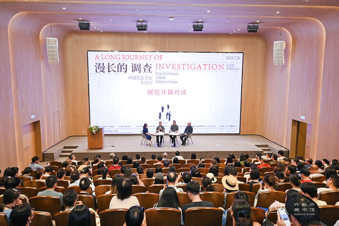 80余年前,中国营造学社带着测绘仪、胶片和笔记本深入四川,在战火中抢救下730处古迹的影像数据,书写下《中国建筑史》。他们用丈量古建的脚印、陋室里校勘手稿的油灯,完成中国建筑史学科奠基。今天,他们的后人在展览开幕式现场齐聚一堂,对谈、回忆、讲述那段波澜壮阔的历史,与现场观众一起向那段烽火岁月中的文化守护者们致敬。