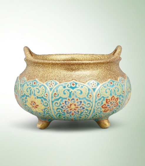 洋彩仿景泰蓝番莲纹三足炉