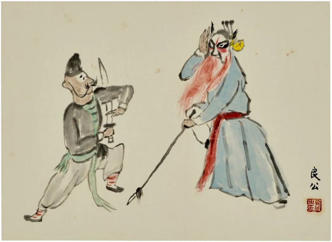 关良是现代艺术史上著名的国画家、油画家及美术教育家。他从小跟着父亲看戏,在创作中亦以京剧人物见长,在过去文人画家回避戏剧人物的主题时,关良更是第一位全心钻研京剧人物精髓的画家。