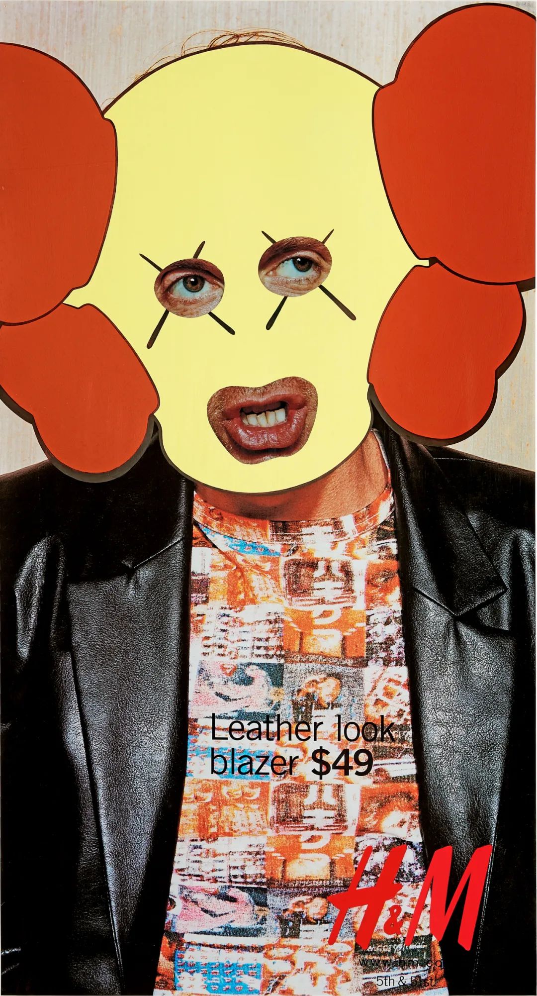 当他从街头转向综合艺术媒介时,并未割裂与大众文化的共生关系,反而以精妙的视觉转译将加菲猫、海绵宝宝等卡通图腾转化为充满哲学张力的当代隐喻,而这件《无题(H&M)》海报也不例外,他透过戏虐的方式将流行文化延伸至现实,而这种对集体记忆的挪用既是对消费主义图像的戏谑式祛魅,亦构建了一套游走于雅俗边界的美学语言。