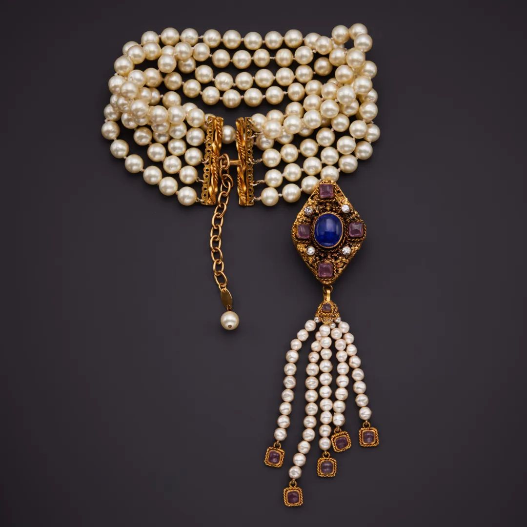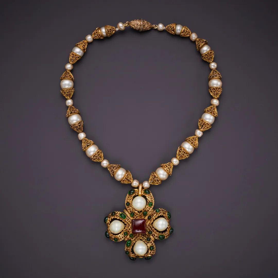 CHANEL香奈儿 1970年琉璃及仿珍珠吊坠项链