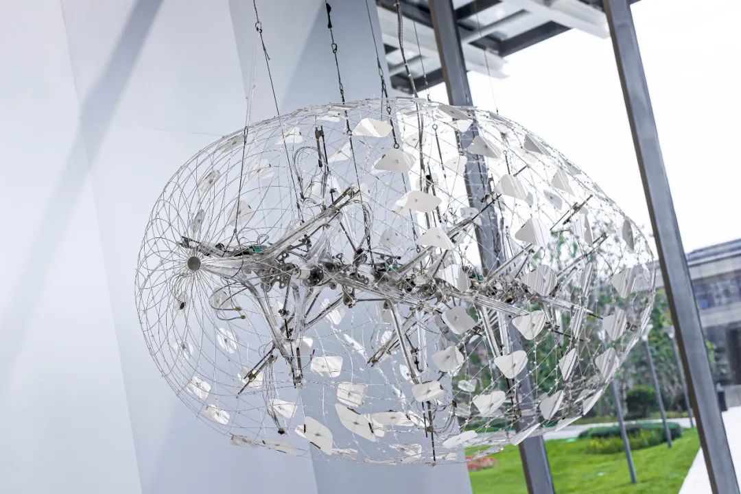 赵潇潇,《云图》,2022,铝、电子元件、碳纤维杆。晋城“古建新语”当代艺术展——“斗转星移”艺术家群展展览现场,晋城城市体验中心,2025。图片由UCCA Lab提供。
