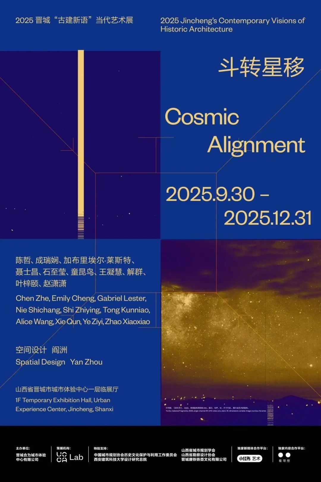 2025年9月30日至12月31日,2025晋城“古建新语”当代艺术展于山西晋城城市体验中心呈现。作为一场以艺术为媒、焕活千年古建新生的文化创新实践,本次活动以晋城城市体验中心开馆为契机,联动推出群展“斗转星移”与中央美术学院教授、艺术家邬建安个展“第八十天”。展览汇聚12位国内外知名艺术家,立足国际化视野与多元当代艺术实践,以“古建+艺术”的新范式,助力晋城建设全国“文旅康养样板城市”和“知名文化旅游目的地”、推动古民居国家文物保护利用示范区创建、进一步提升晋城作为“中国古建博物馆”的城市品牌影响力。2025晋城“古建新语”当代艺术展由晋城合为城市体验中心有限公司主办,中国杰出现当代艺术机构UCCA尤伦斯当代艺术中心旗下的UCCA Lab领衔策划。
