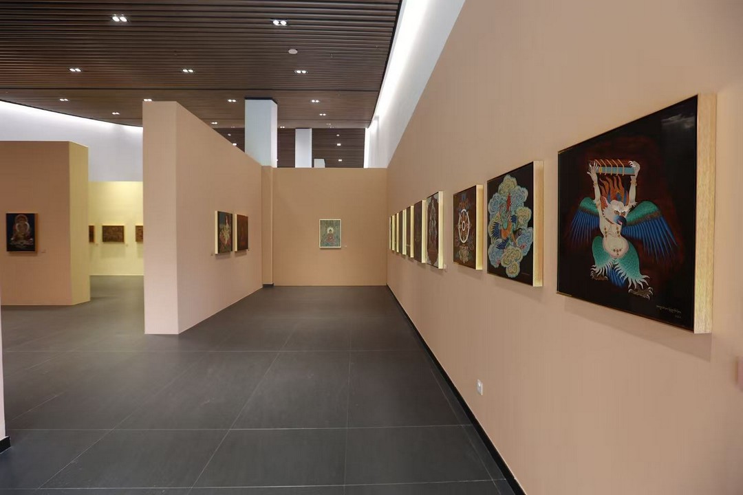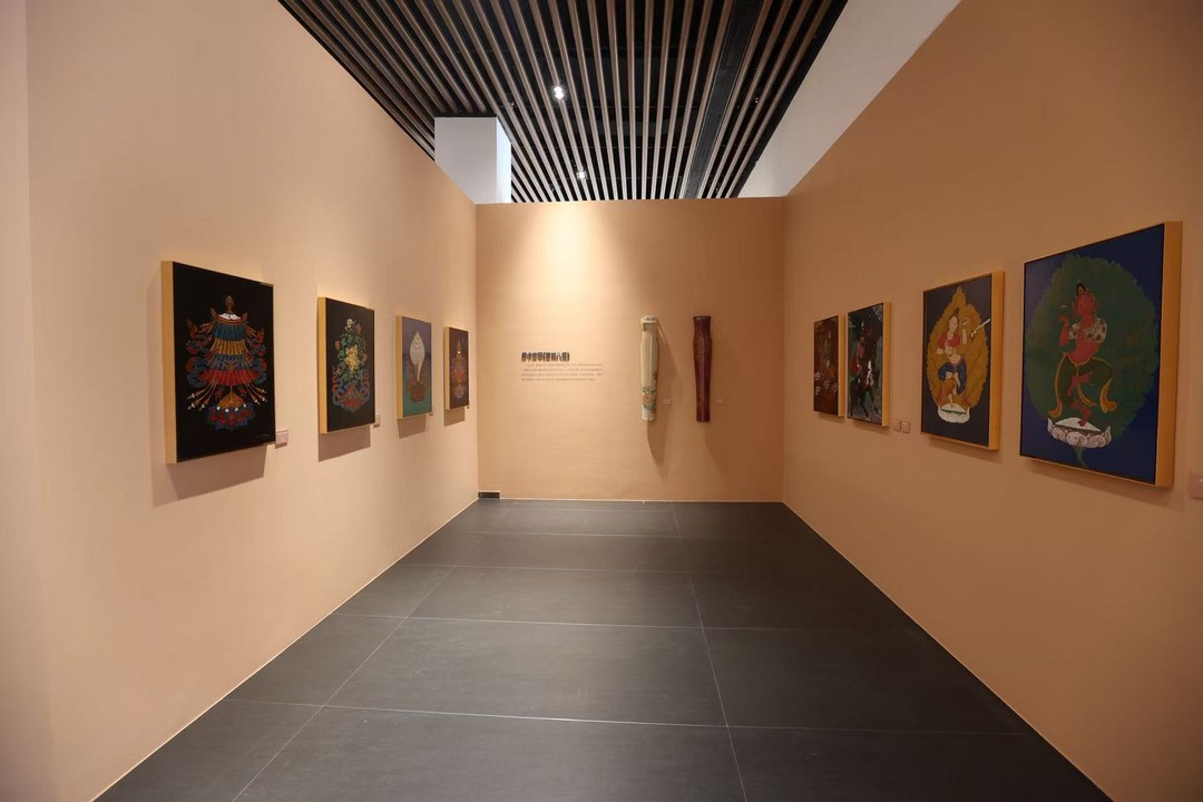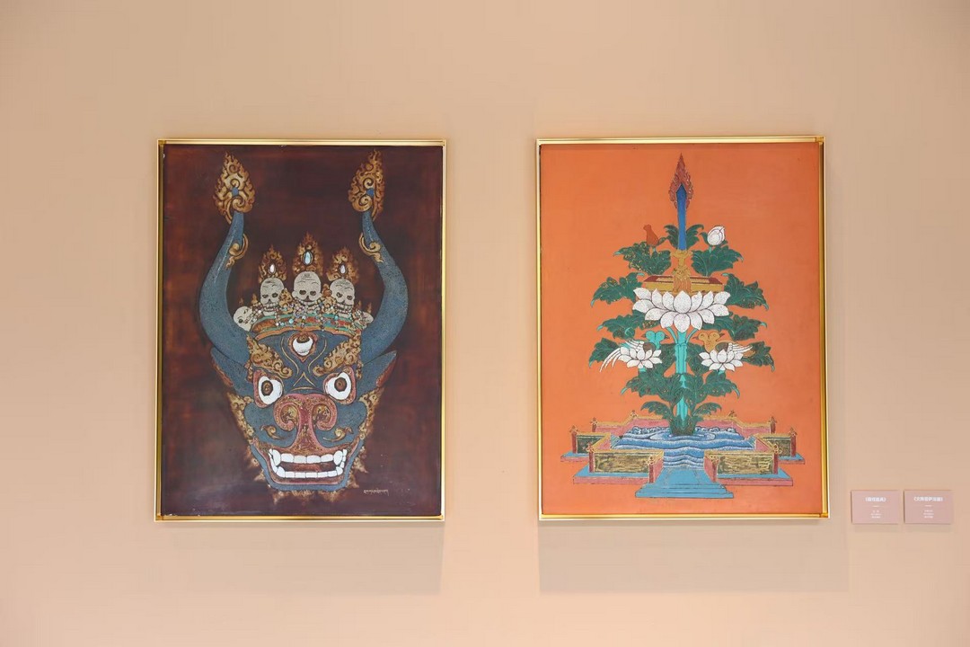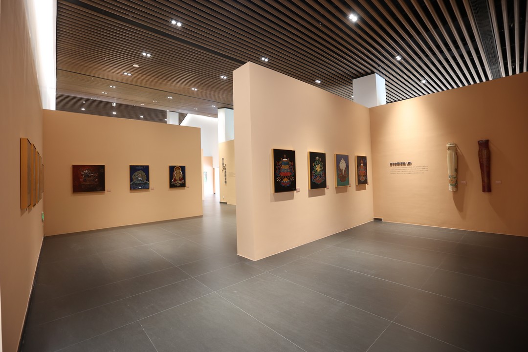 此次展览的亮点——唐卡漆画,其诞生与发展凝结着文化传承与跨界创新的智慧。回溯其历程,2016年福建省艺术馆在“艺术扶贫工程”基础上启动“农民漆画”创新实践,为乡土艺术注入新活力;2018年福建漆艺跨越山海,与雪域高原的唐卡艺术相遇。“唐卡漆画”从最初一位唐卡传承人的个体探索,逐步发展为昌都藏族青年艺术家群体参与的实践热潮,更吸引西藏六个唐卡画派传承人加入创作。这种融合不仅是漆艺与唐卡技艺的碰撞,更是福建与西藏两地文化的深度互鉴、情感的紧密联通,他们用唐卡漆画作品生动奏响了一曲跨越地域的艺术交响。