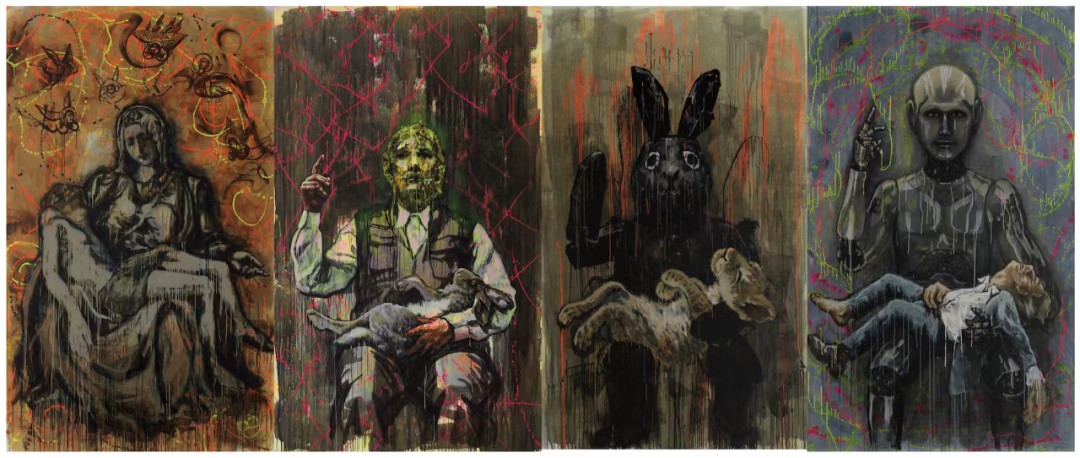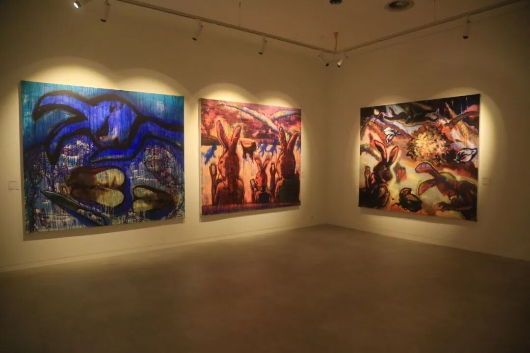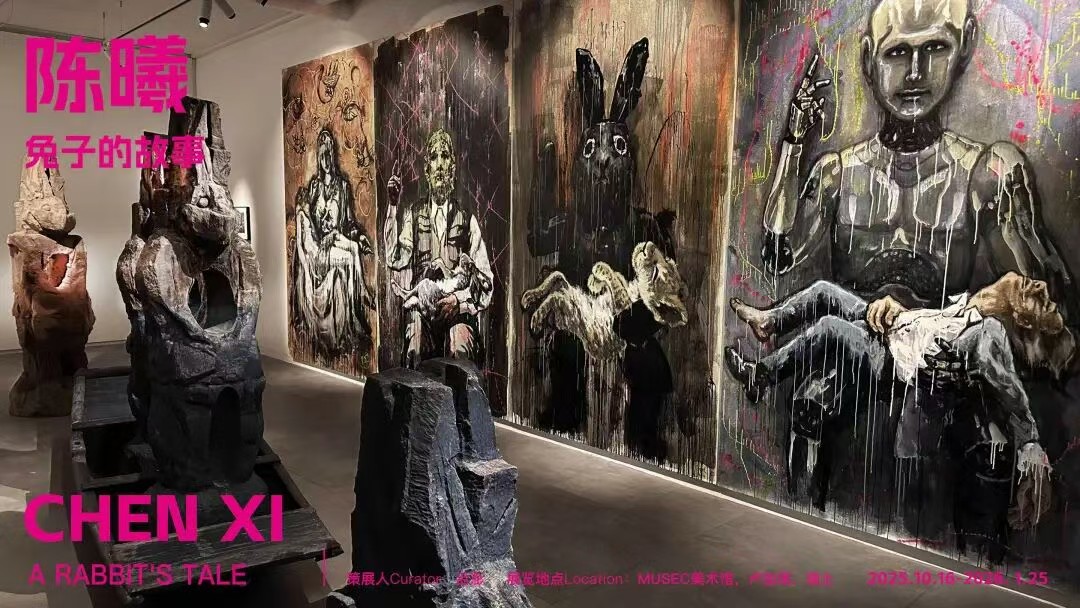 近些年的兔子从色彩到笔触,正变得愈发厚重,甚至让画面中的对抗愈发凸显,似乎冥冥之中呼应了三十多年前艺术家所接受的学院化表现主义启蒙,只是在社会中游走多年的陈曦,让这股表现的力量变得更有的放矢,更从容且有力。并不明显的暴力美学,正如寂寥无人的街道,凝固在空寂中的血腥气暗示着被掩盖的原罪。陈曦一如既往的冷静回应:“保留对生活现实的对抗”。因此她的隐喻系统,时常超越了单纯的社会批判,上升为一种存在的探索。她不仅揭示世界的表象与真实之间的裂隙,更在裂隙中植入希望的种子——那些看似脆弱的生命形态,恰恰蕴含着最坚韧的力量;那些被主流叙事忽视的边缘经验,那些在涣散边缘线之中的人性褶皱,那些嘈杂的线条所暗示的无法确定的形象,恰恰保存着未来的可能性。