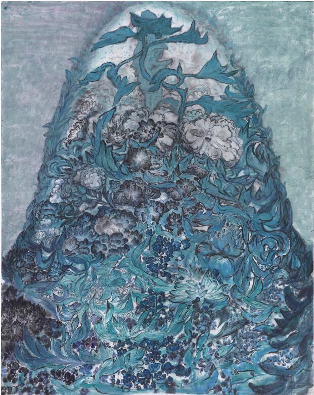 青藤操 Vines Amidst the Blooms,147 x 184 cm,纸本水墨,2022