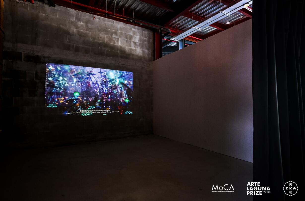 作为本次展览的总策展人,曾连续担任拉古纳国际艺术奖学术委员会委员的黄壹先生在开幕式上深入解读了展览的核心理念:上海作为亚洲通往世界的窗口,其兼容并蓄的气质让这里成为拉古纳艺术奖“对话的场域”,而非单纯展示空间,本次亚洲首展并非威尼斯及其他地区展览的简单延伸,而是以当代艺术语言为纽带,让不同地域创作相遇重组、形成跨边界文化共振的“新的文化生成”;为实现这一目标,策展团队以“工业美学”打造现实中的“网络世界”,2000余平方米展厅采用去中心化布展结构,不设主轴线与固定观看顺序,地面方盒子装置如“信息节点”嵌入数字影像增强沉浸感,还将展厅划分为四大板块引导观众层层递进体验“艺术故事”;同时团队尊重EKA・天物原始工业结构,仅将展墙处理为铁锈色呼应空间记忆,构建独特观看体验,策展人期待观众能留意方盒子间距“节奏”、地面反光与影像闪烁的呼应,感受铁锈墙、冷光与数字屏幕交织的“工业呼吸”,在不经意间被“引动”感知。
