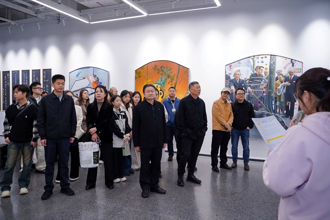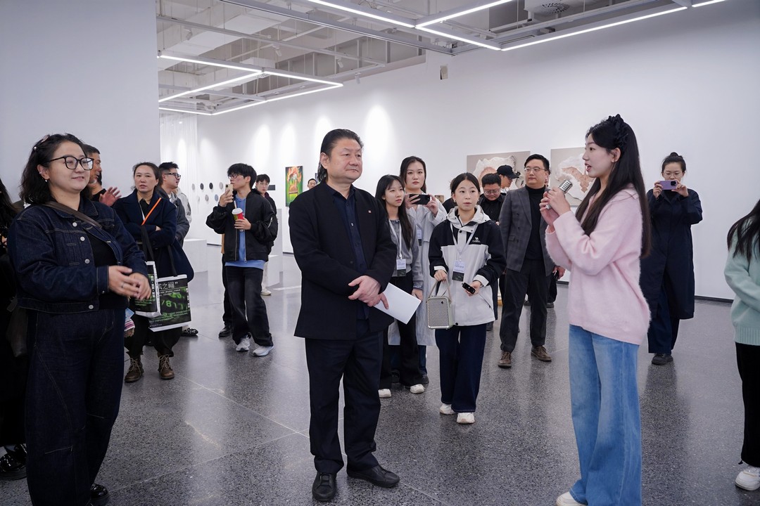 陕西省美术协会主席、西安美术学院院长朱尽晖作开幕致辞,他表示此次展览的主题“生成之间”意在促使我们深入思考当代中国的策展实践及其方法创新,面对新技术、新媒介、新机制、新环境,青年策展人需要创造性地回应和解决文化生产新变革、文化消费新需求及其带来的新问题。解构与重塑人工智能时代艺术家与策展人的对话语境,呈现中国青年策展人对当代社会和多元文化的审美观察与理性思考。现场展览呈现的作品形式多样,融合绘画、AI等,饱含对自然、生命、现实的深度思考与批判性,兼具学术意义与创新性,期待后续论坛能够碰撞出新思想,并预祝展览成功。