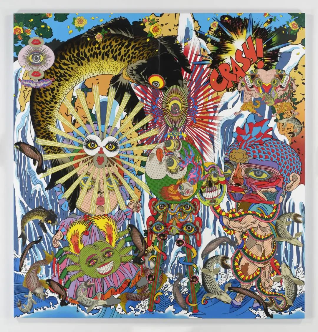 田名网敬一, 《深谷的诱惑》, 颜料墨水、丙烯丝网印刷介质、碎玻璃、亮粉、丙烯颜料、画布, 209 x 200 cm, 2024 ©NANZUKA
