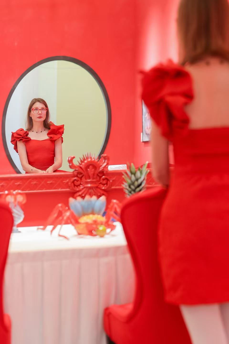 11月13日,上海ART021盛大开幕。当代艺术家玛丽娜·费德洛娃(Marina Fedorova)携全新个展《红色晚宴》(Dinner in Red)于E23展位亮相,凭借独特的视觉语言与戏剧化空间设计,成为开幕首日的亮点之一,吸引了大量观众与媒体关注。