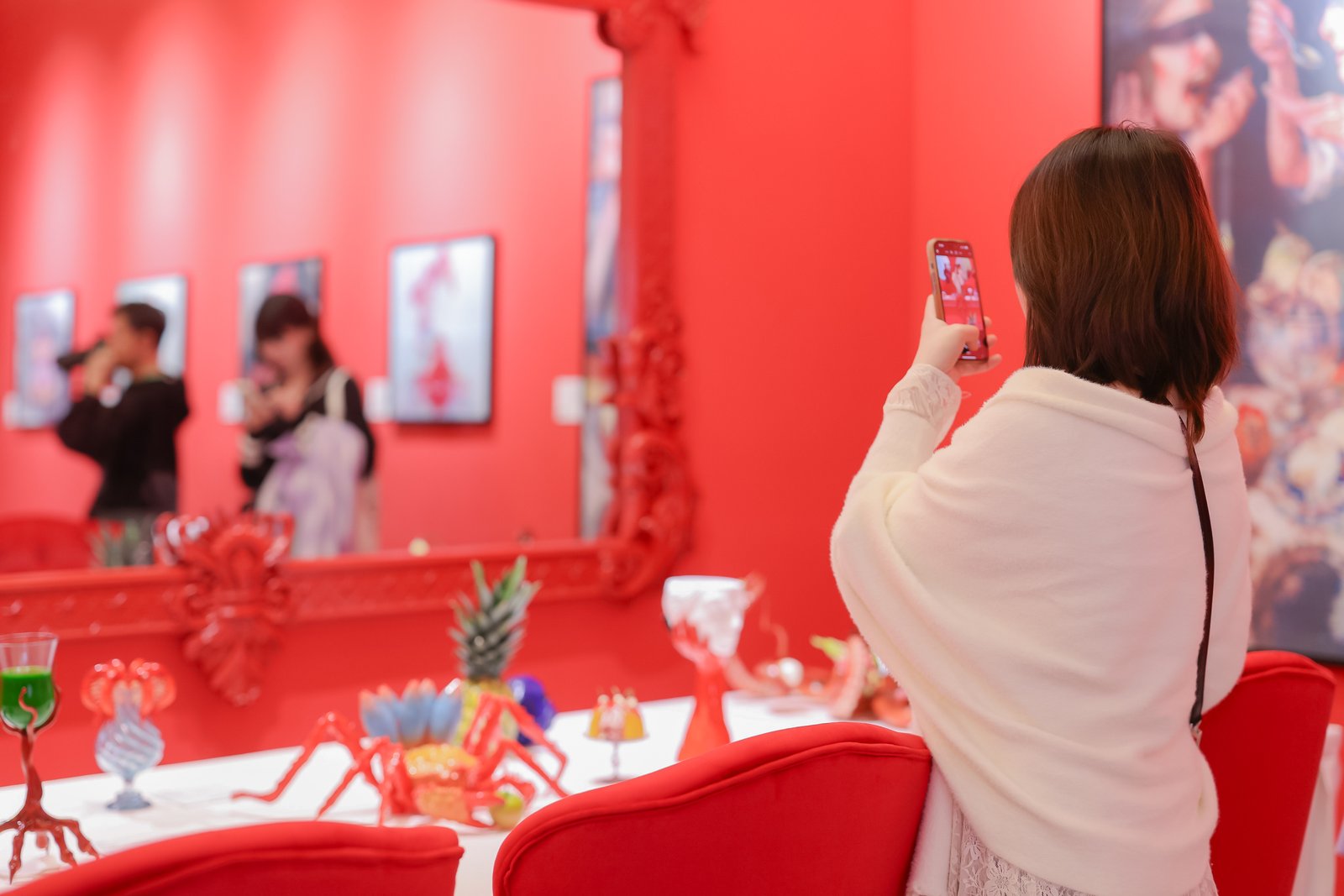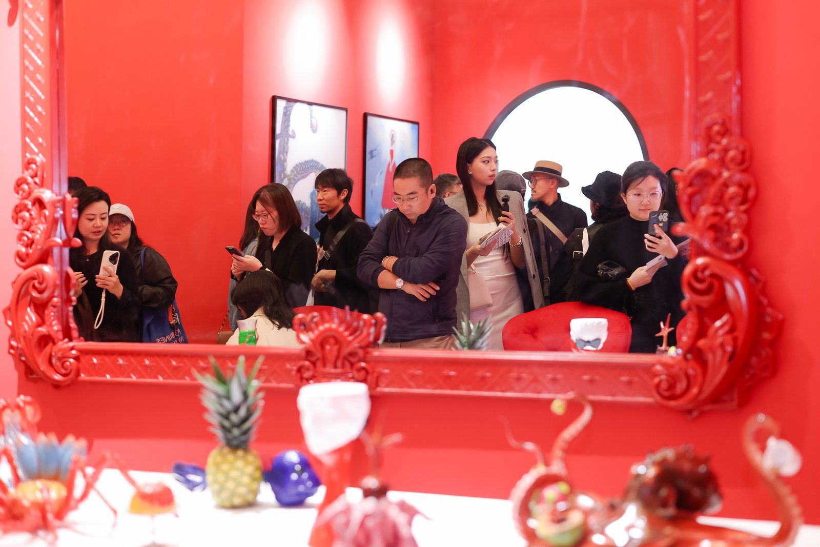 不少观众也主动分享他们从作品中读出的情绪与故事。深切的共鸣让艺术开始真正“呼吸”。红色的空间、人群的能量、快门闪动的瞬间,共同构成了这场盛宴的一部分。