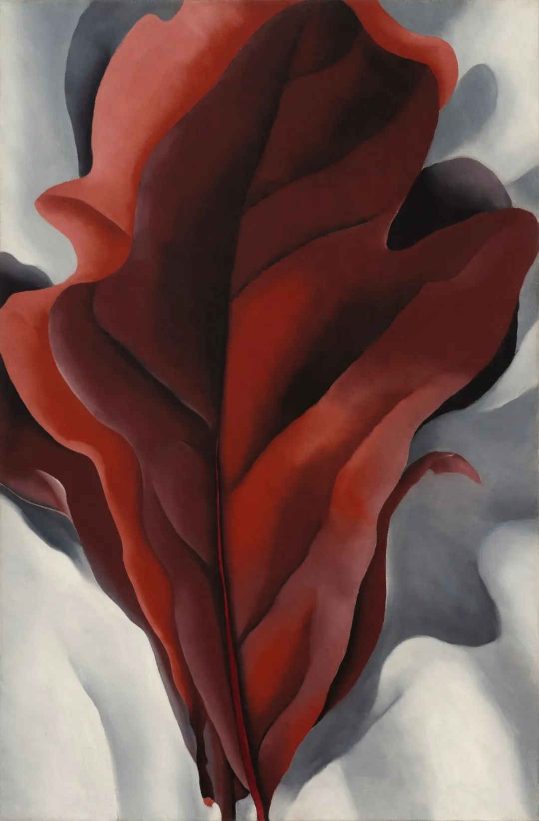《白色背景前的深红色大叶子》