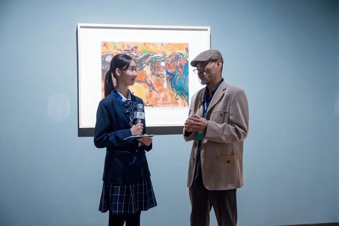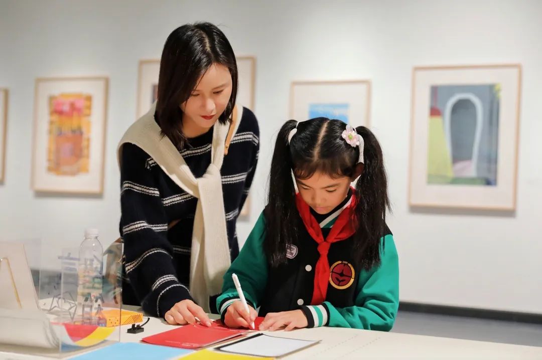 开幕式结束后,“小小导览员”在展览现场为观众进行了展览导览,他们用清澈的眼睛与直抵人心的感悟,为观众提供一个观看作品的新角度,对艺术的解读没有标准答案,美育的价值在于培养独立的观察与思考。同样身为青少年的“华茂·美堉小记者”,在开幕现场也积极与研讨会嘉宾及参展艺术家展开交流,小记者们关注“中国丝网版画40年”对儿童美育发展的意义,也好奇如何从零开始创作丝网版画,更试图解码潜藏于作品形式之下的思想观念与时代精神。通过他们真诚的提问,搭建起艺术与青少年之间的沟通桥梁。