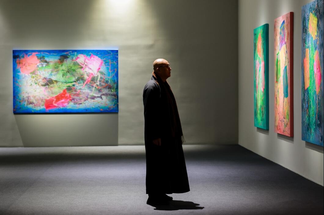 “我从哪里来,要到哪里去,我为什么活着。只要搞清楚其中一个问题,后面两个问题就跟着解决了。”艺术家大憨的人生轨迹,无疑就是一场深刻的自我修行。他在艺术生涯最具生命力的时刻剃度出家,从艺术院校讲台前的传道受业者,到青灯古寺里的僧人艺术家。这种身份的转变,并非割裂的断层,而是生命体验的自然延续与升华,他真正实现了艺术与佛法间的“自然而然”。艺术不是炫技,是修行的另一种表达,是佛法智慧融入生活肌理的自然流露。艺术与佛法,自由与真理,践行与觉醒。