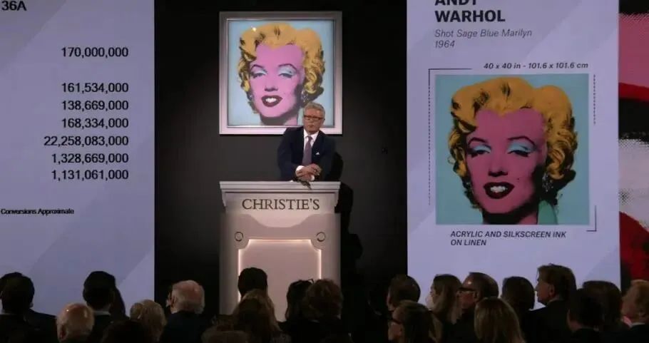 安迪·沃霍尔《枪击玛丽莲(鼠尾草蓝色)》拍卖现场