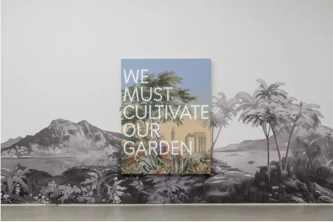 克雷以其大型发光文本作品而闻名,他将公共空间与语言相结合,通过两者之间的相互关系,探索内嵌于空间之中的意义。在本次展览中,他以全景画幅展开了“黄金国”(Eldorado)的理想化景观,邀请观众进入传说中的乌托邦领域。艺术家将层次丰富、意蕴深远的短语与黄金国景观——这一常被视为“大航海时代”象征的意象并置,创造了一个开放的场域,供人们沉思现实与理想、空间与人类之间的关系。