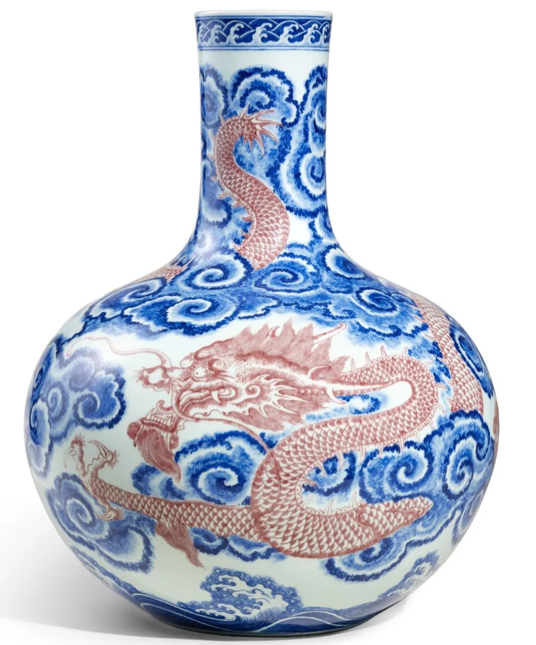 清乾隆 青花釉里红云龙纹天球瓶