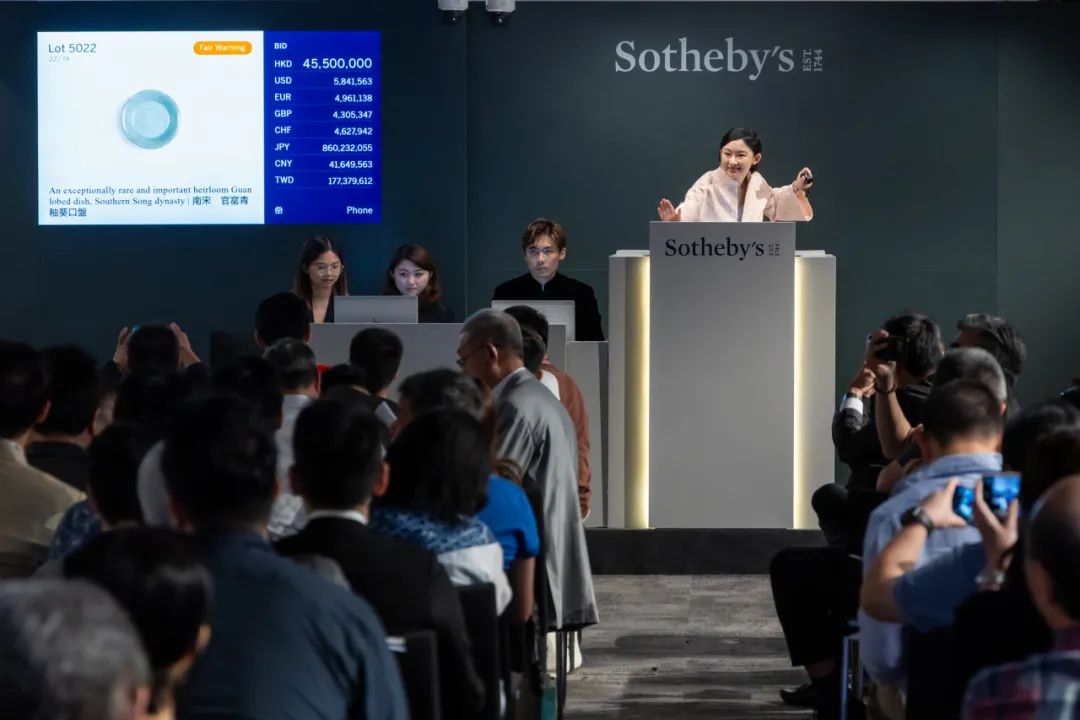 本季成交冠军:南宋官窑青釉葵口盘由一名中国内地藏家投得,以55,885,000港元超越高估价成交。