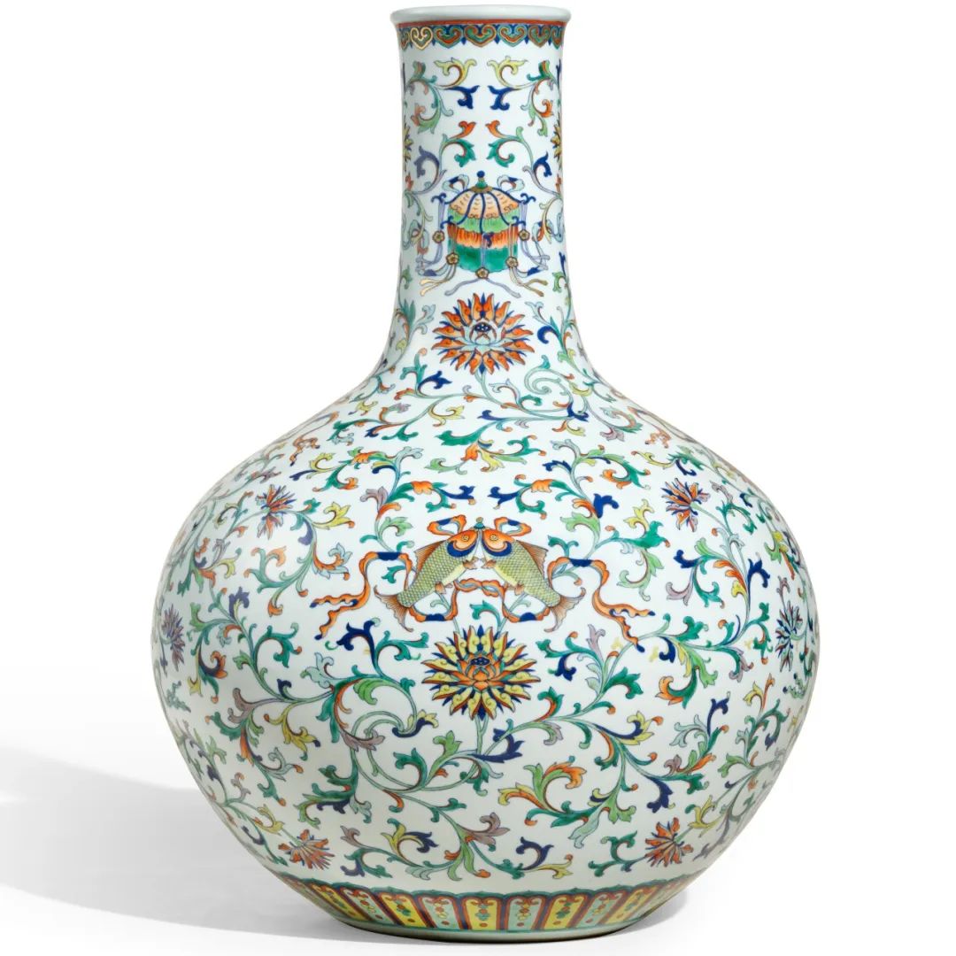 清乾隆 斗彩加粉彩描金缠枝莲八吉祥天球瓶