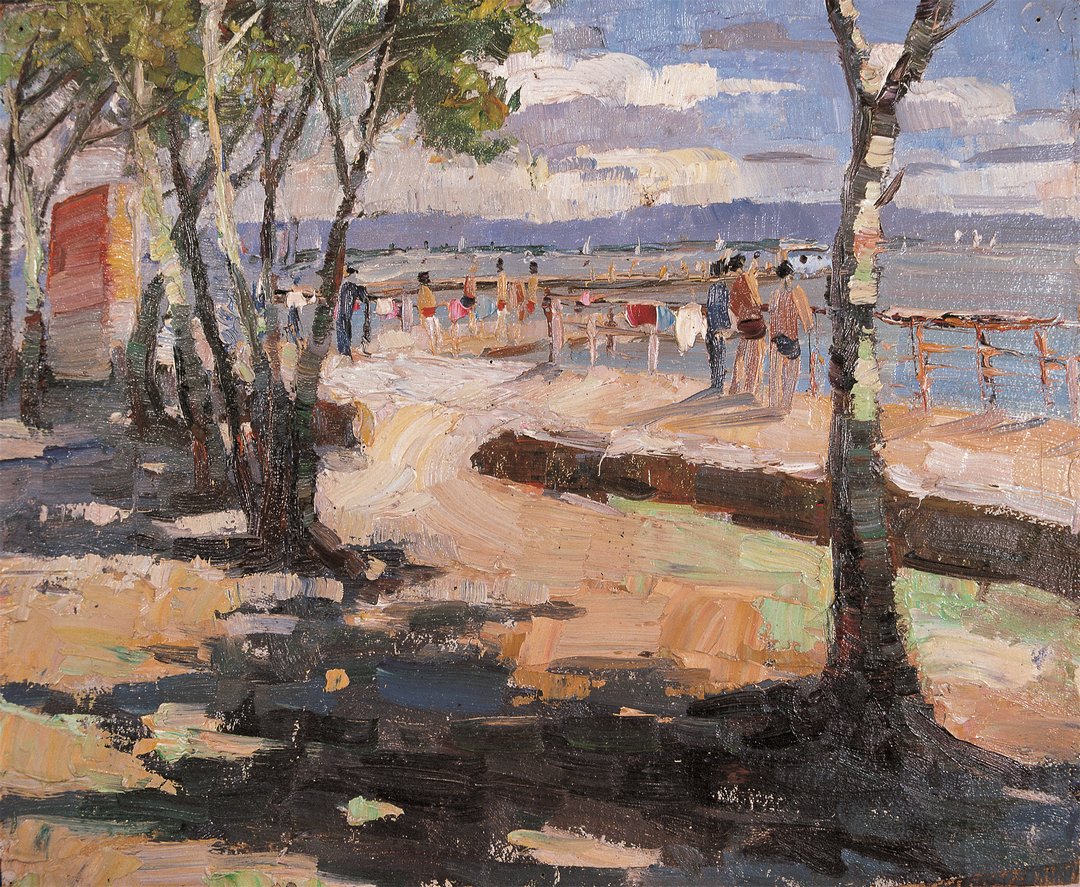 《夏日的海埂》,30×36cm,纸本油画,1975
