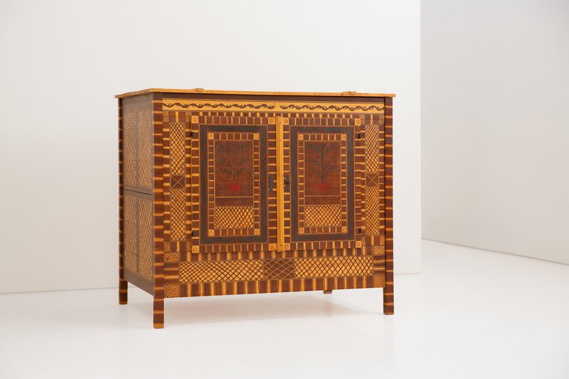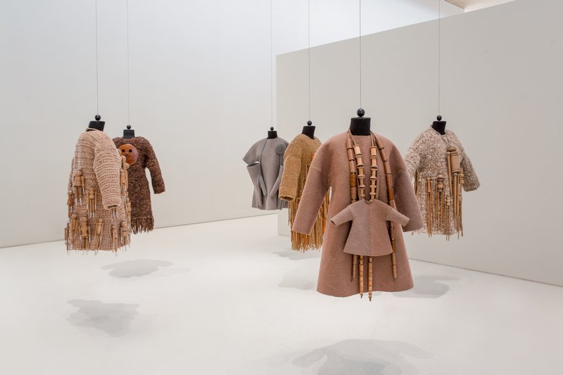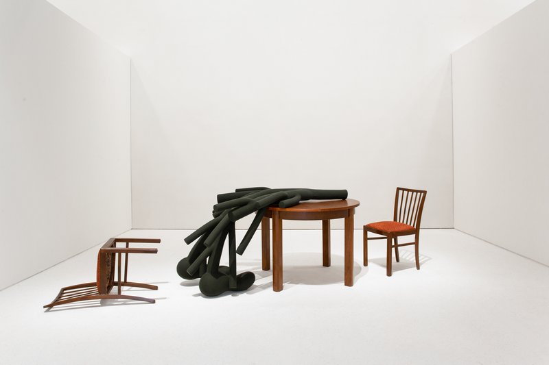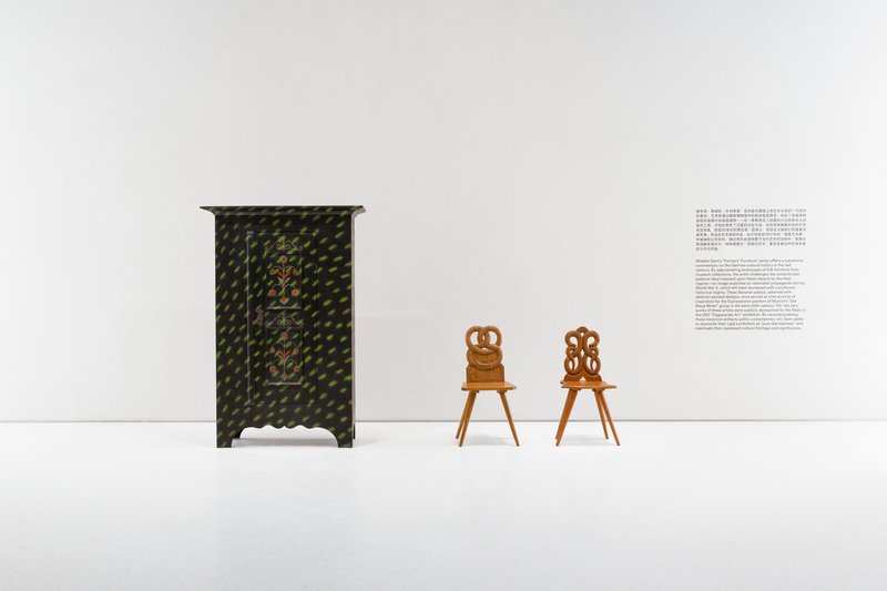 维布克·西姆以雕塑为核心媒介,将日常物品从原有语境中抽离,并扭转其形态与意义。自上世纪80年代起,她以时尚为切口,将服饰转化为不可穿着的雕塑:手工缝制的连衣裙、外套与帽子在无人穿着的悬挂状态下,成为文化建构的性别外衣。她重构十八至十九世纪德国乡村传统中的家具,精细还原其结构与细节,却刻意消解使用功能,使这些物件脱离现实而成为凝固的文化遗物,沉淀着关于近代德国国家叙事的集体记忆。