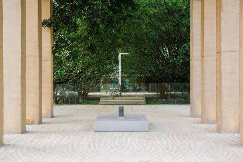 坐落在林荫道尽头的“戏台”空间回应了中国传统戏台的建筑样式,它作为一个半开放的户外展厅,链接起美术馆内外的建筑空间,吸引着花园内外观者的目光,此处将持续呈现不同的公共艺术作品。