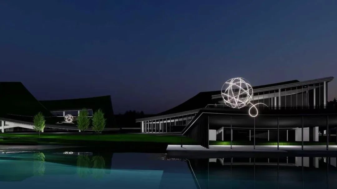 为了确保它不显突兀,我曾两次飞赴现场进行推演:我们模拟了从A馆远眺的视角、从街区中心透视的视角,以及走到作品近旁仰视的视角。同时,我们精确计算了它与B馆屋顶的呼应关系,确保它在白天是与环境共生的景观装置,而在夜晚点灯后,则通过编程灯光成为连接两岸的视觉焦点。