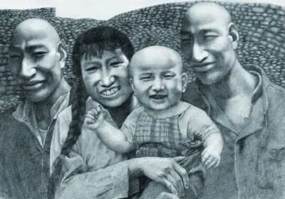 方力钧第一件“光头”作品——《素描之三》 ,1988年