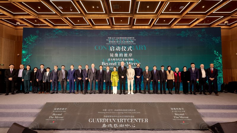 2025年12月15日,由北京嘉德艺术中心、辽宁省公共文化服务中心、辽宁省文学艺术界联合会、中国(辽宁)自由贸易试验区沈阳片区管理委员会联合主办,教育部中外人文交流中心、文化和旅游部中外文化和旅游交流中心、沈阳市文学艺术界联合会协办,并获意大利共和国驻华大使馆文化处、比利时瓦隆大区外贸与外国投资总署驻华代表处、意大利鲁宾艺术中心、中欧人文艺术教育联盟、沈阳市商务局、沈阳市人民政府外事办公室、中国国际贸易促进委员会沈阳市分会、沈阳市人民对外友好协会、荷比卢商会等单位支持的“镜像的彼岸:意大利当代艺术展”(Beyond the Mirror: Italian Contemporary Art Exhibition)在嘉德艺术中心开幕。
