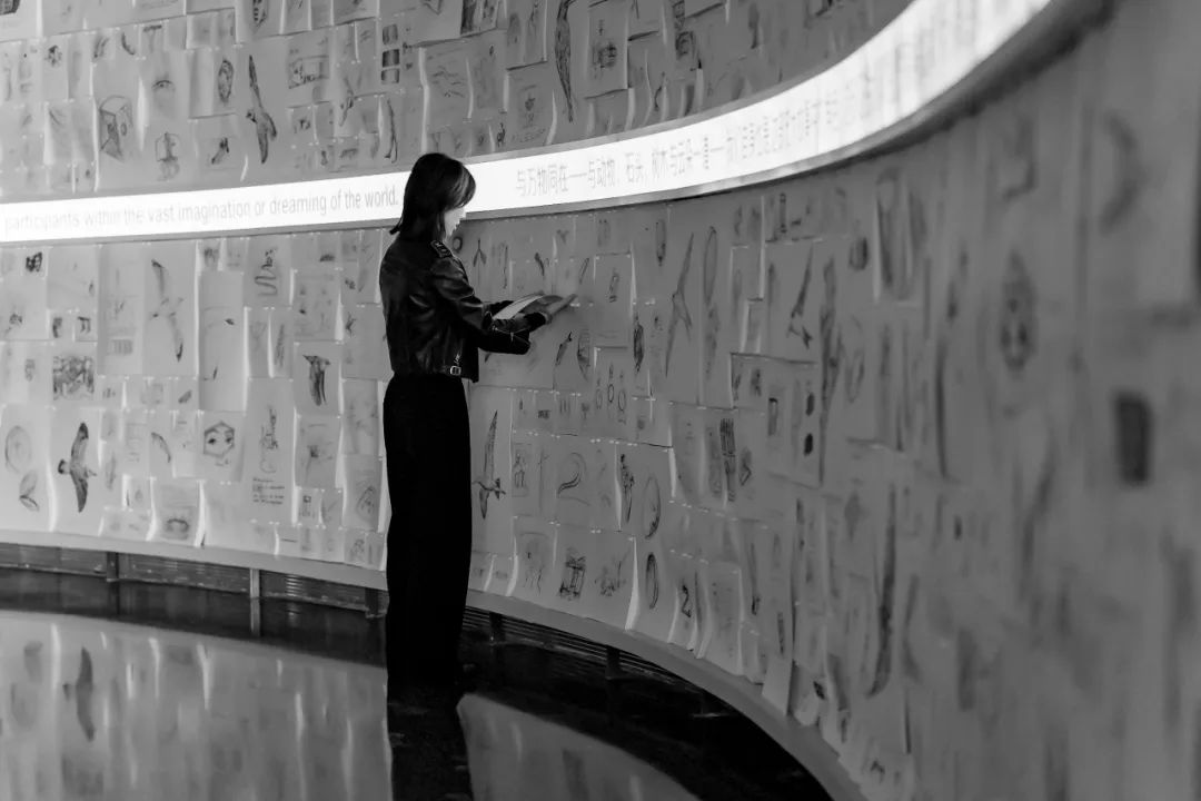 我将这块“漂浮石”视为一个古老的洞穴,而我就像人类早期的艺术家,在岩壁上留下手印。楼上的影像作品,是当代的、动态的洞穴壁画;楼下的手稿陈列,则是纸本的、参与式的壁画。二者共同营造出一种类似礼拜堂的冥想氛围。