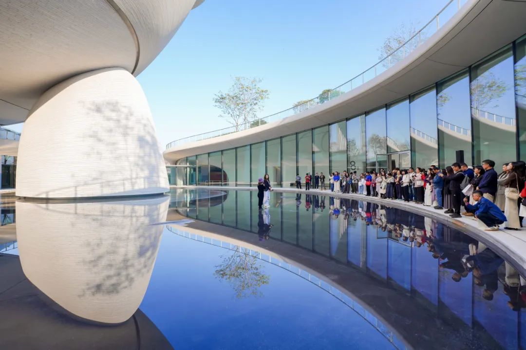 这座建筑乍看抽象如艺术品,但其内核充满了故事感。作为策展人,我的理念主要围绕“时间尺度”与“城市精神”展开,我将其定义为一种“远古的未来感”。