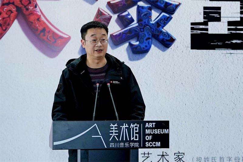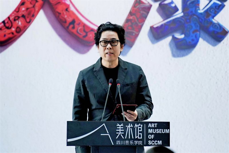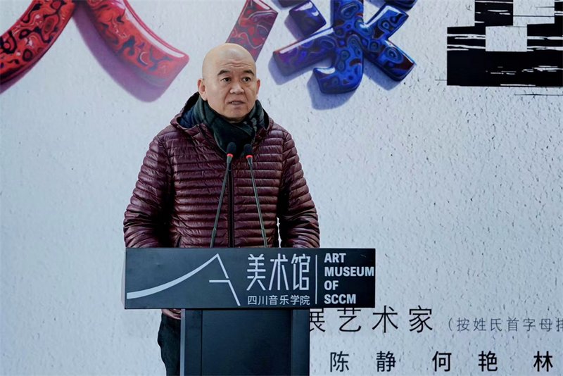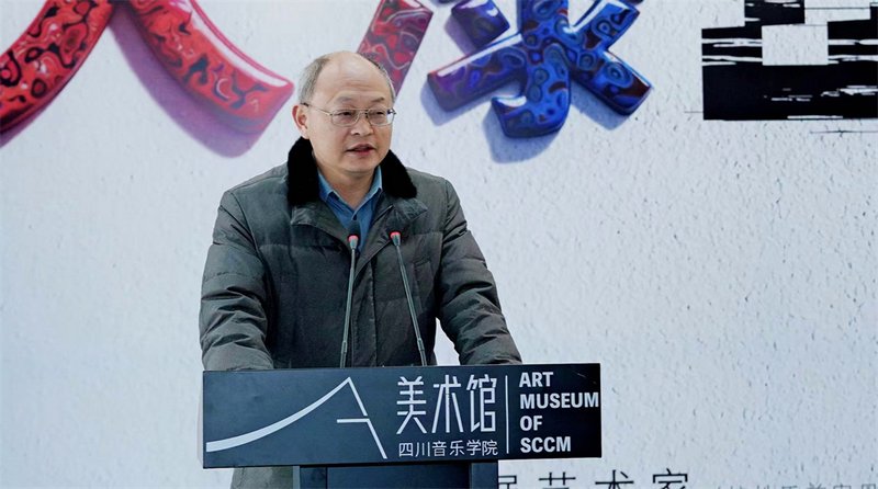 四川音乐学院党委常委、副院长、四川省雕塑协会会长牟文虎致辞并于最后宣布展览开幕