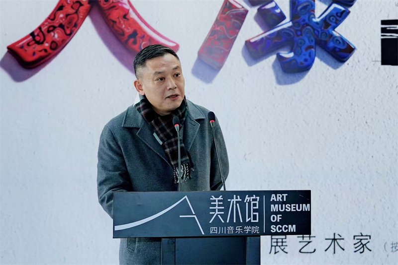 在开幕式上,四川音乐学院党委常委、副院长、四川省雕塑协会会长牟文虎致辞并于最后宣布展览开幕。中国雕塑学会副会长、著名批评家冀少峰,四川美术学院美术馆馆长何桂彦,中国美术家协会漆画艺委会副主任汤志义,四川音乐学院美术学院党委书记贺阳先后致辞。本次展览开幕式由四川音乐学院美术馆馆长、四川音乐学院美术学院副院长曾杨主持。