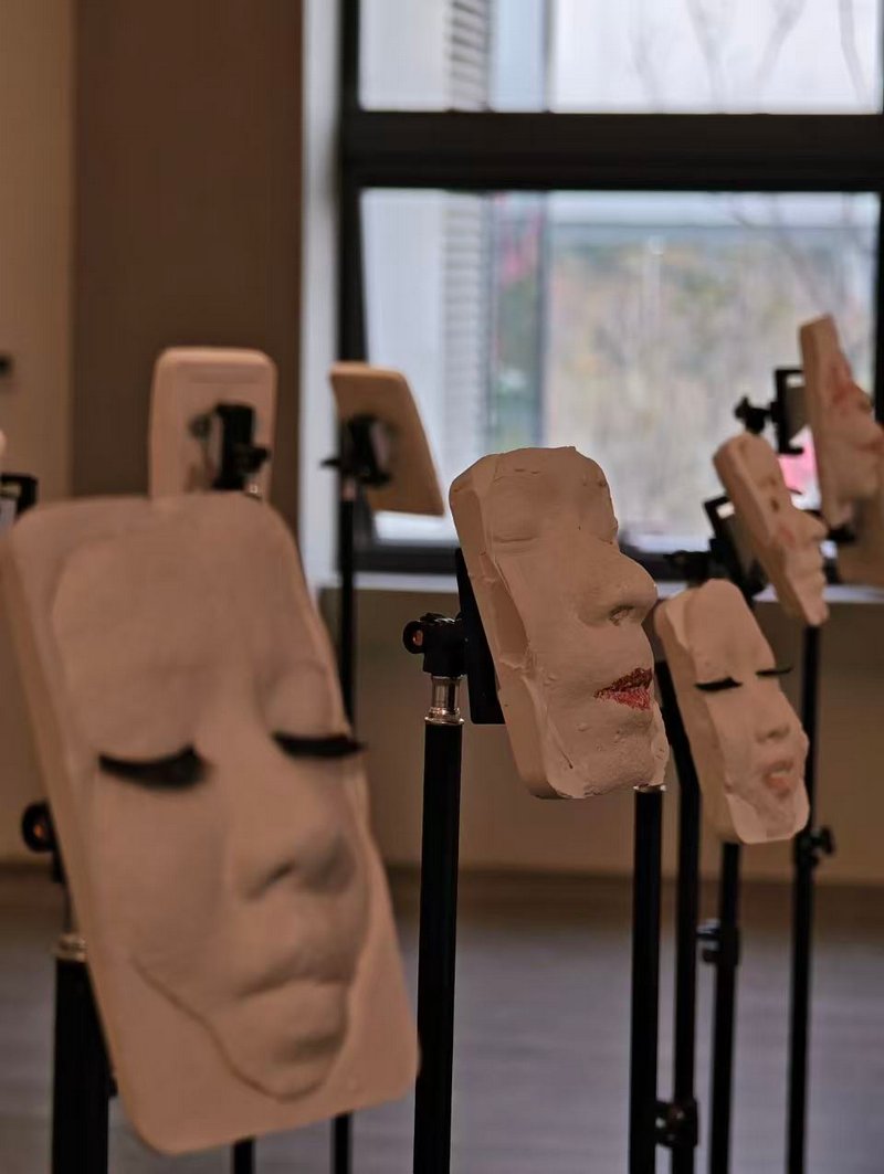 胡行易自幼对历史、电影中呈现的人性复杂与不确定性萦绕于怀,身份问题在数字拟像时代愈发使其困惑。“身份消除系统”与“残存”系列便是对此问题所作尝试的多种探索。他利用人脸翻模技术,将各色面容置入饭碗、外卖盒、铁锅等日常容器,个体的现实身份在此悄然消融。这一大型装置可从多角度解读:法国现象学家列维纳斯(Emmanuel Levinas)曾以“他者之面容”作为伦理学的基石,用以批判海德格尔“此在”哲学的唯我论独断。胡行易的创作则反其道而行之,他有意将面容虚化乃至彻底消除,以此折射出对技术与资本双重逻辑的深刻审视。在其作品中,原本作为精神与身份载体的“面容”,已然被异化为可消费的抽象符号或可规训的权力对象,而后被技术与资本的双重浪潮冲刷至模糊不清、面目全非。这一处理,或可视作福柯笔下“人之死”在视觉领域的又一次形象化演绎,当个体的独特性被系统性地解构与吞噬,那个建立在稳定、完整主体性之上的“人”,是否还有在夹缝中存活可能。