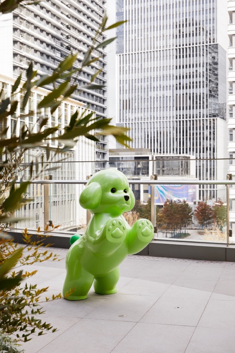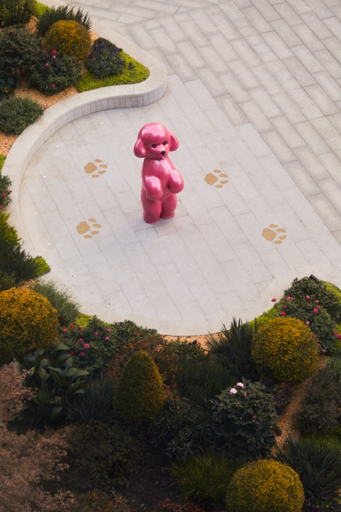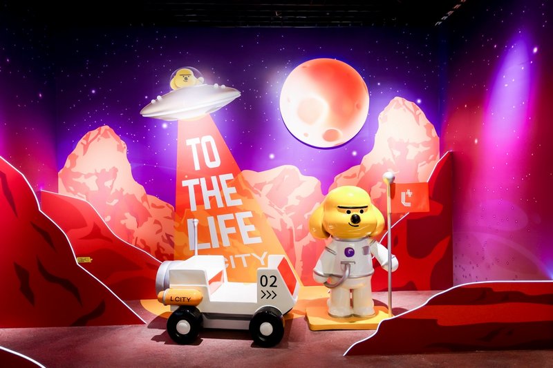 这组由五只憨态可掬的小狗组成的雕塑群,巧妙分布在陆悦天地的露台空间,它们是五只来自不同行星的宇宙小狗,怀着好奇与勇气踏上了星际旅程。它们性格各异,拥有各自的爱好与超能力,却在共同旅途中缔结了深厚的友谊。最终,它们发现了陆悦天地——一个充满奇迹与探索乐趣的世界,并决定在此驻留,共同守护这片欢乐与活力交织的希望之地。