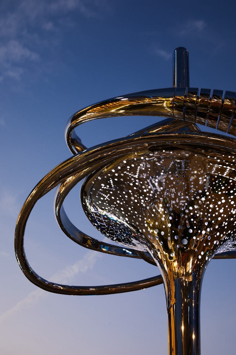人们穿行于陆悦天地的公共场域,目光不自觉地被这件作品吸引,如同被无形的时空之力所牵动。每当夜幕降临,金属材质在光线中折射出星辰般的光芒,仿佛将宇宙的浩瀚与人类的渺小、科技的理性与艺术的感性完美统一。这不仅是对张江科技工作者的致敬,更是对人类探索精神的永恒礼赞。