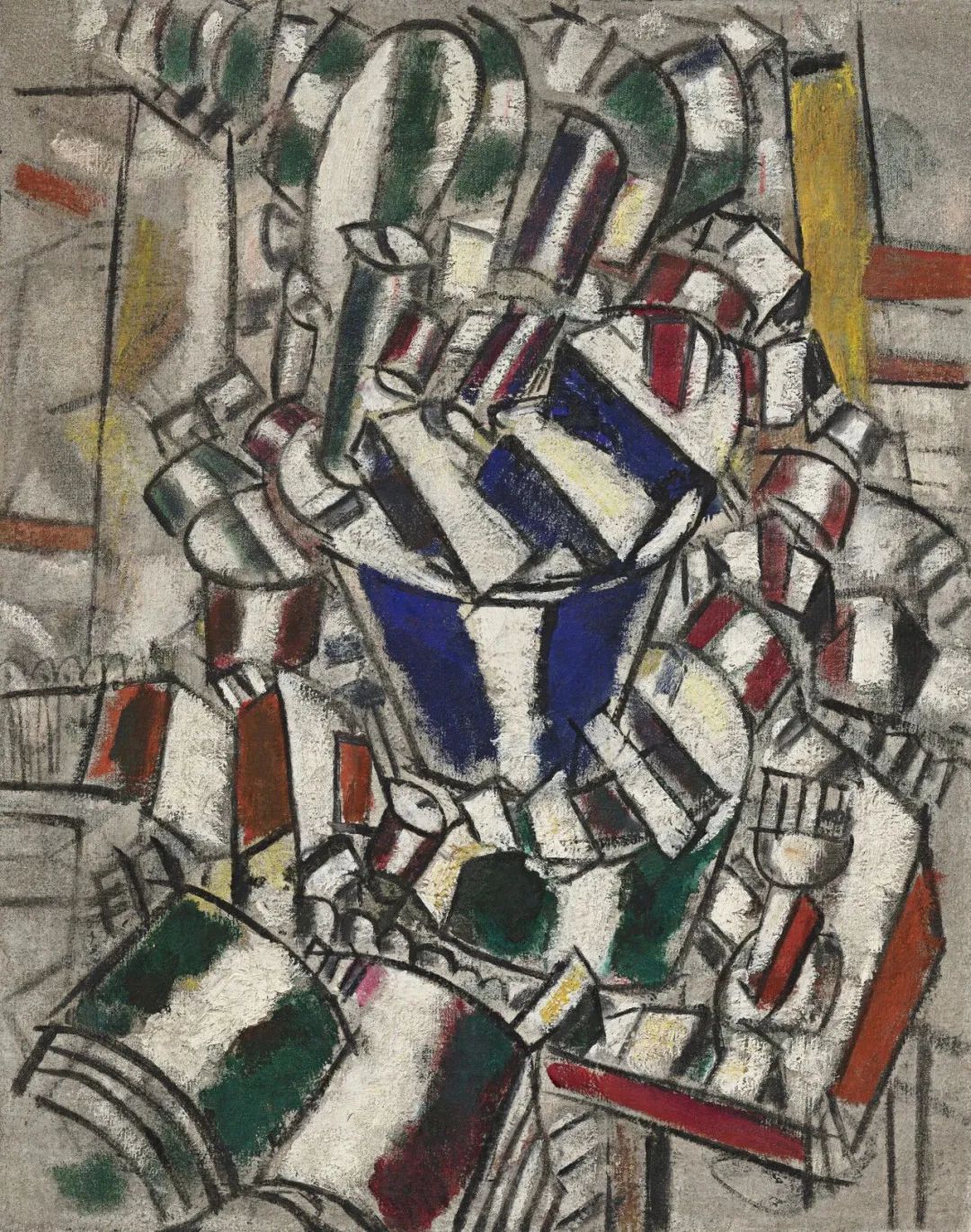 创作于1914年的《构图(静物)》,是费尔南・莱热“形状对比”系列的核心六幅代表作之一。1913年莱热与卡恩维勒签约,与毕加索、布拉克并肩跻身立体主义先锋之列,这件作品既是其艺术理论的实践典范,亦是战前极具颠覆性的经典图像。画作曾入藏立体主义顶级藏家道格拉斯·库珀的宅邸,与毕加索作品同厅陈列,1980年被萨尔茨曼家族购藏并稳居其收藏核心。