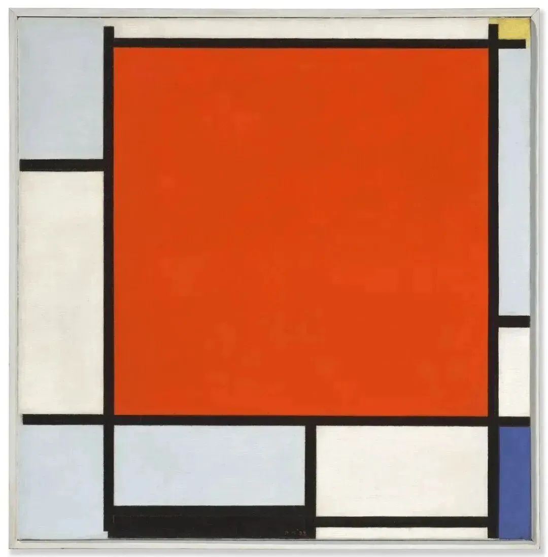 彼埃‧蒙德里安,《构成:大红色平面、蓝灰色、黄色、黑色和蓝色》
