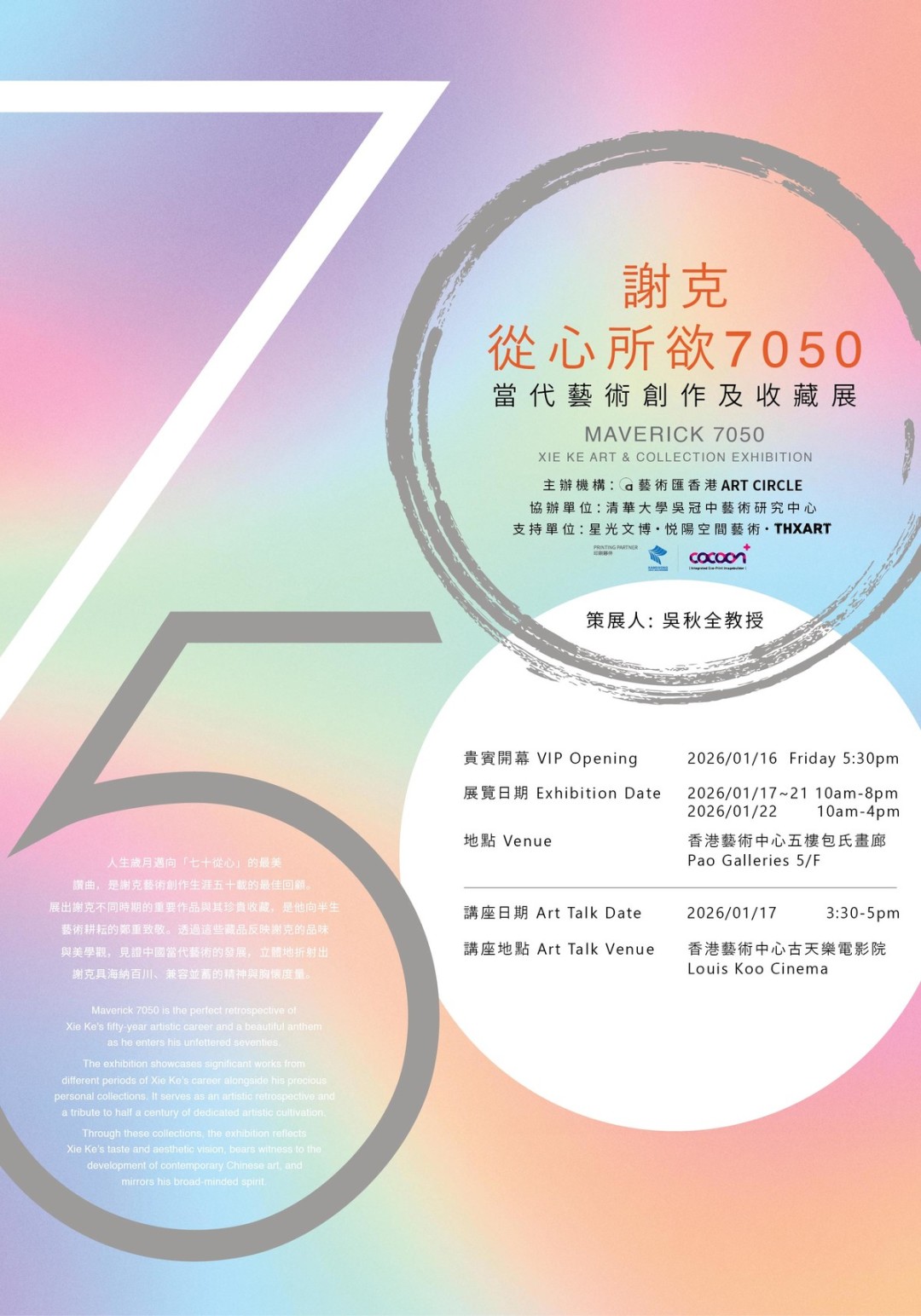 《從心所欲7050 :謝克𣈱談50年藝術生命與中港藝術發展》展覽講座: