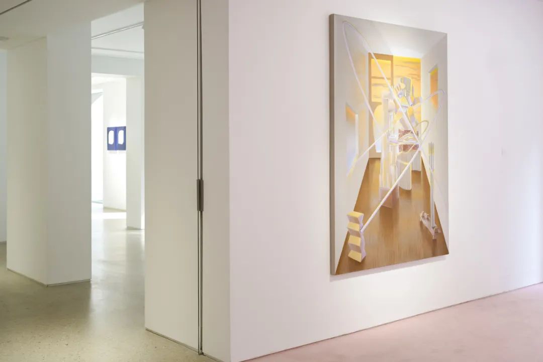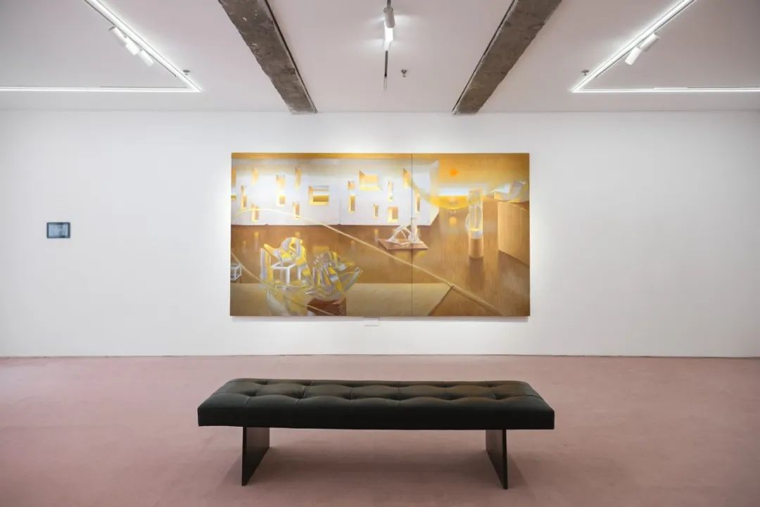 艺术家吴凌昊作品关注当下时代的碎片化、信息多元化社会形态下的个体。艺术家分享其会在透明的画布上铺盖色粉,来呈现一些悬疑感与暧昧。画面中经常出现的粗野主义建筑实际已经失去建筑本身的功能,仅仅作为一种象征出现。画面之于艺术家的的意义在于将时间的张力与瞬间的感受凝固下来。