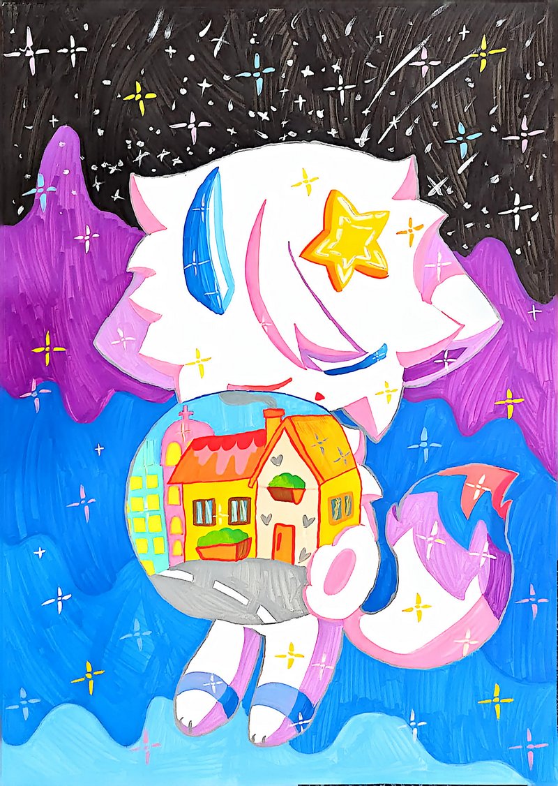 该画展由浙江知名企业德力西集团与自闭症干预机构“大米和小米”共同策划主办。此次上海巡展共收到来自全国各地的14位自闭症青少年创作的109幅画作,其中年龄最大的“俊锆”20岁、最小的“梓睿”仅9岁。经主办方筛选,最终呈现给公众的80幅作品涵盖了丙烯、水彩、水墨等多种绘画形式。题材尤为多样,既有生活即景,也有山川花鸟,还有很多充满瑰奇想象的梦幻画面,充分展现了自闭症青少年丰富多彩的内心世界。