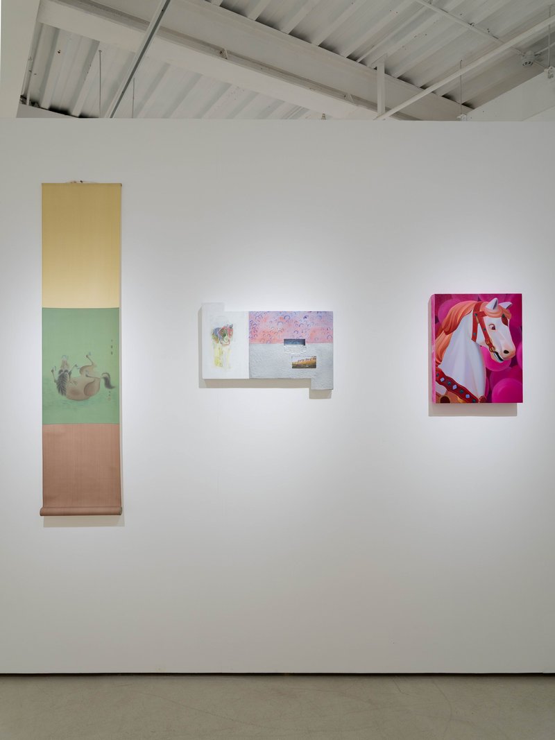《天马 Pegasus》有别于传统的生肖联展,特别邀请东西方32位当代艺术家,创作73件独家“马”题材的绘画、装置与雕塑作品。德国艺术家鲁普雷希特・冯・考夫曼(Ruprecht von Kaufmann)以其冷暖色狂乱笔触创作《The Boxer》,呈现马的视觉冲击力量。艺术家代英伦的《人群-回首》以“白色”隐喻人与马的精神本真与自由。法国艺术家弗朗索瓦・邦内尔(François Bonnel)的《Wild Horses》则透过几何高彩色块,抽象地展现马的童趣,热情唤醒观者内在情感的愉悦。艺术家李梁晨的作品《时空山谷》以青绿山水设色,表现白马立于宛若仙境的神秘意境,与自然合而为一。从欧洲、美洲到亚洲,每一位艺术家笔下的马,不仅是一个形体的存在,而是灵魂的投影——它或奔驰于光影裂缝,或静立于时间缝隙,或化为抽象的笔势,象征意志的冲撞,或以色彩线条的呼吸,传递生命的律动,在艺术之境自由奔行。