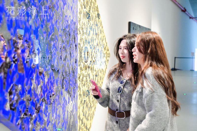 “花彩海上——古原整体艺术作品展(舟山站)”将持续展至2026年3月13日。欢迎广大艺术爱好者莅临舟山普陀美术馆,全方位、沉浸式地领略古原整体艺术作品的独特魅力。