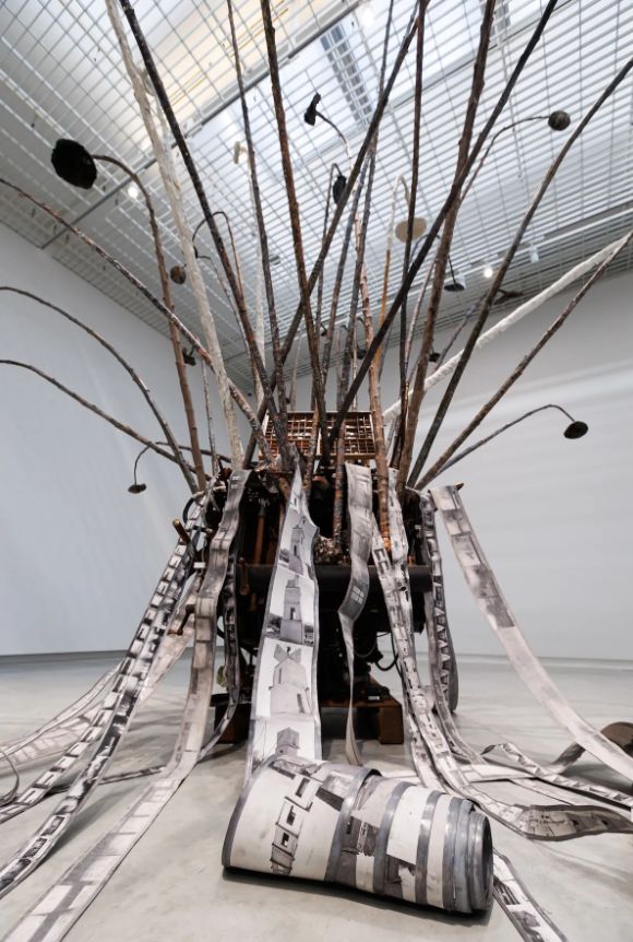 安塞姆·基弗的大型装置《Der verlorene Buchstabe》几乎是这位艺术家在泰国的首次大型创作呈现。作品以一台海德堡印刷机为引力核心,数株由树脂铸成的向日葵从旁拔地而起,高度约7米。在基弗看来,这不仅是关于印刷的消逝,更是对知识、无常与未来的深刻隐喻。